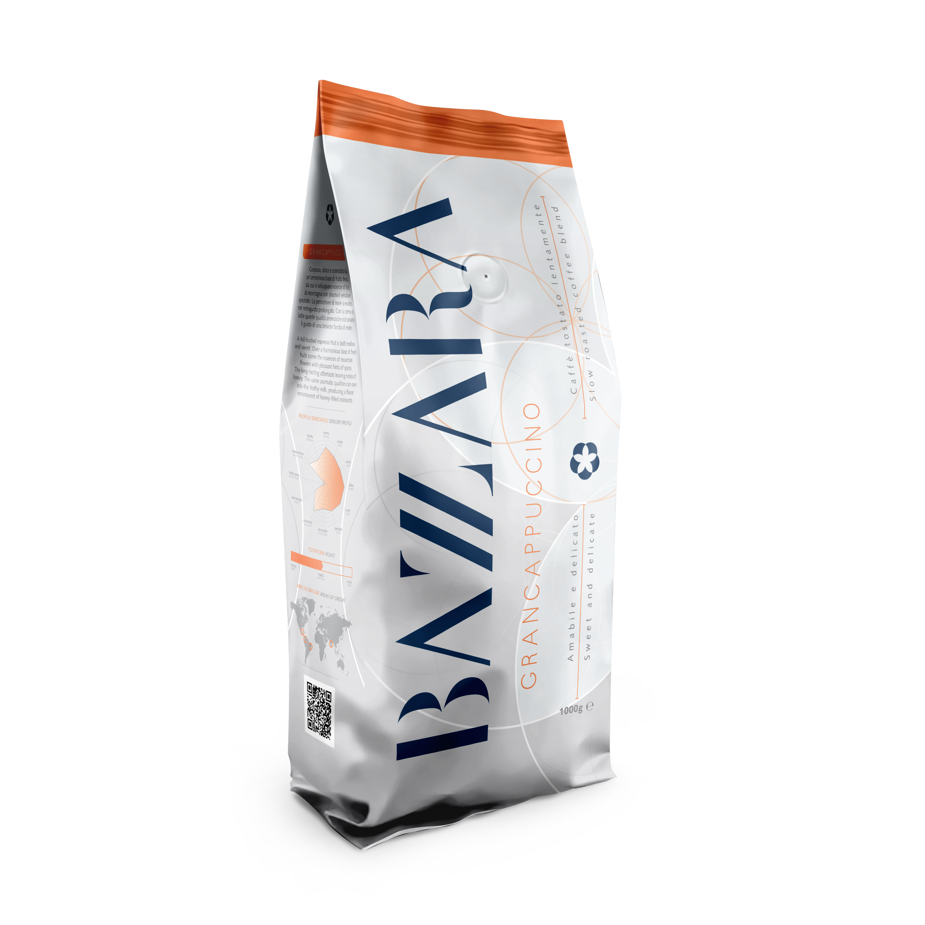 In het pak bonen van 1 kg is onze Grancappuccino geschikt voor wie wil genieten van een uitstekende koffie, vergezeld van een body van opgeschuimde melk.