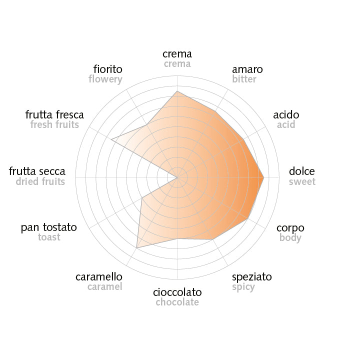Gekenmerkt door een harmonieuze basis van vers fruit, laat het een perceptie van honing achter in de mond, die wordt benadrukt in de langdurige afdronk. Gecombineerd met melk ontstaat er een explosie die doet denken aan een honingbrioche omhuld met een zoet laagje witte chocolade.